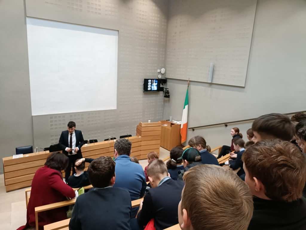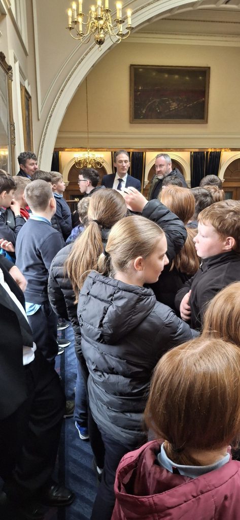 We were invited by Paul Lawless T.D to visit Ðáil Eireann. What a privilege it was for all of us. We were given a tour and met Paul Lawless where he gave our children an opportunity to voice their concerns about farming issues. We are very appreciative of the invitation and of the local TD’s time.